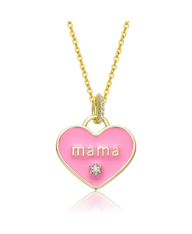 GiGiGirl Kids 14k Yellow Gold Plated with Cubic Zirconia Mama Pink Enamel Heart Pendant Layering Necklace