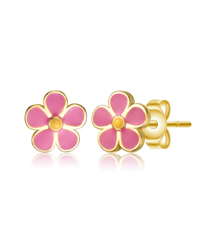 GiGiGirl Sterling Silver 14K Gold Plated Fuchsia-Pink & Yellow Enamel Daisy Stud Earrings