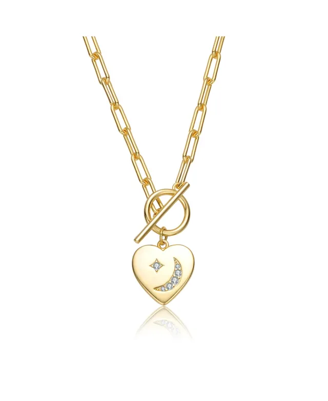 GiGiGirl Teens/Young Adults 14K Gold Plated Cubic Zirconia Moon and Star Heart Charm Necklace