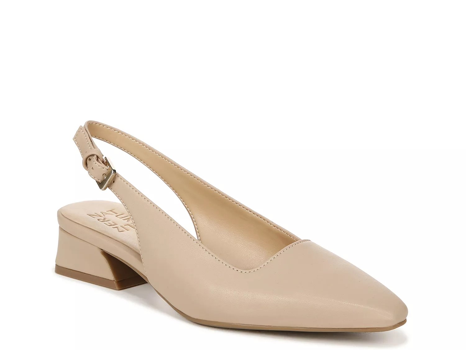 Notch up your polished looks with the Ginger flat from Naturalizer. This pump-inspired slingback comes with a buckle closure to offer an adjustable fit and a flared block heel for a chic and timeless appeal.