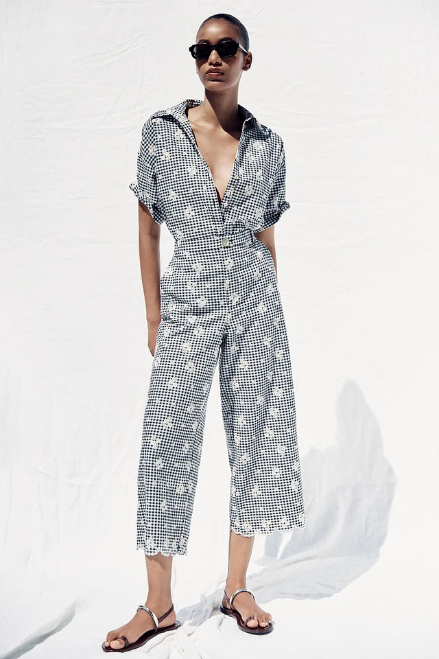 GINGHAM CULOTTES WITH EMBROIDERY