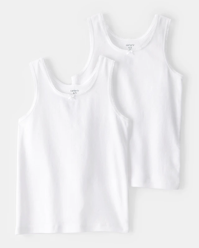 Girls 2-Pack Bow Accent Cotton Cami Tanks - White