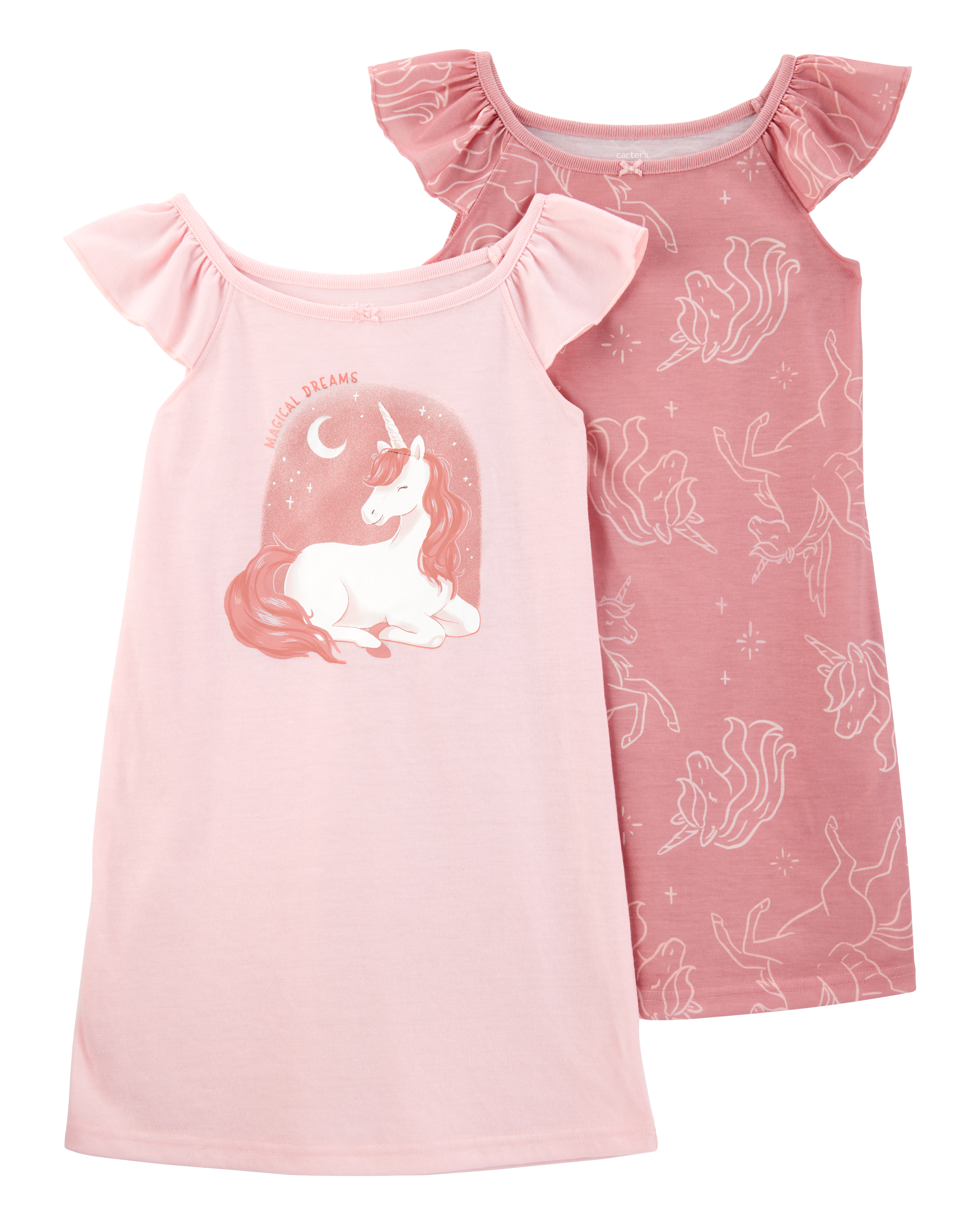 Girls 2-Pack Unicorn Nightgowns - Pink