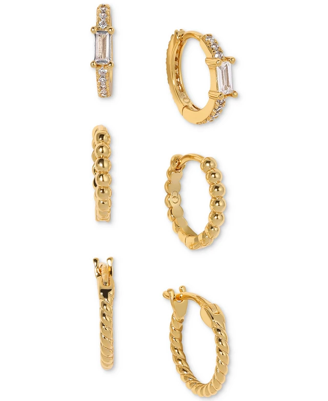 Anne Klein Gold-Tone 3-Pc. Set Crystal, Textured, & Puffy Small Hoop Earrings