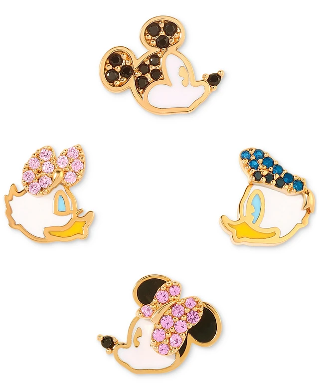 Girls Crew 18k Gold-Plated 4-Pc. Set Color Crystal Sweethearts Single Stud Earrings