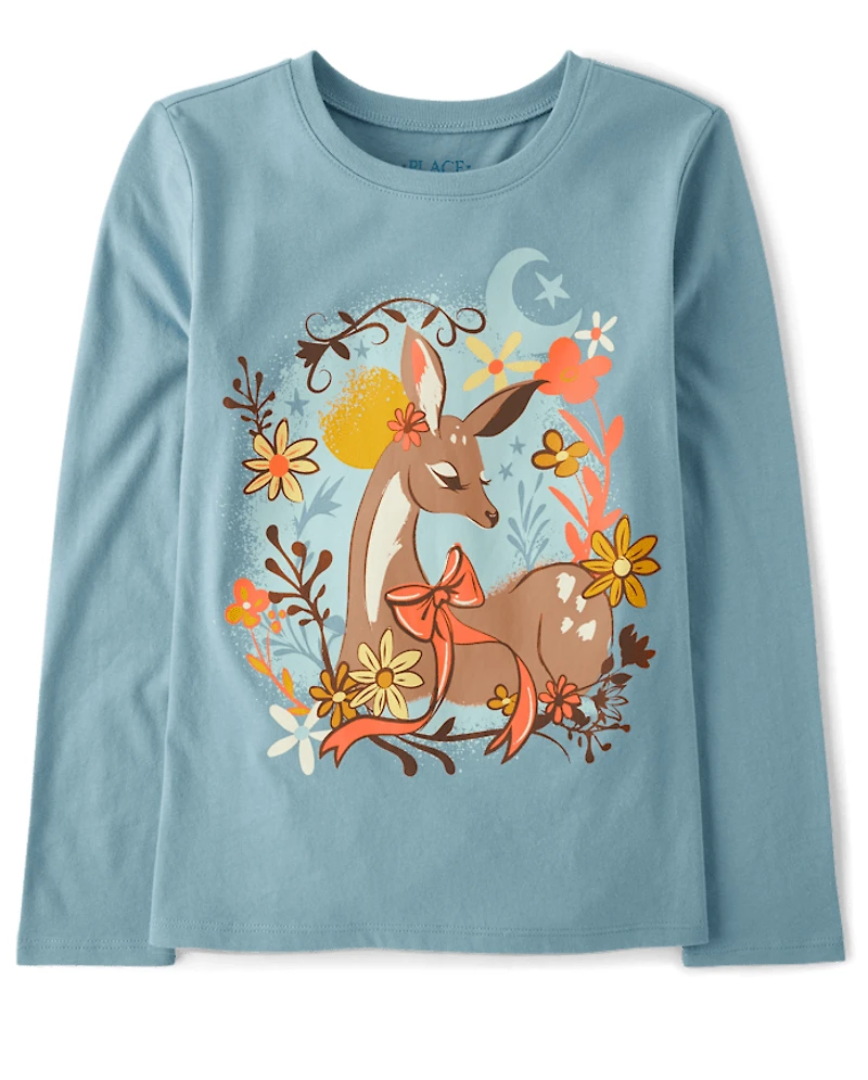 Girls Floral Deer Graphic Tee in Bloomington, MN