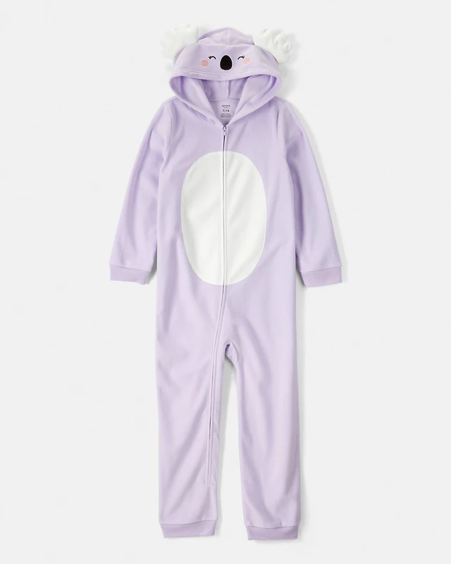 Girls Koala Fleece Hooded Zip-Up 1-Piece Pajama Jumpsuit - Purple