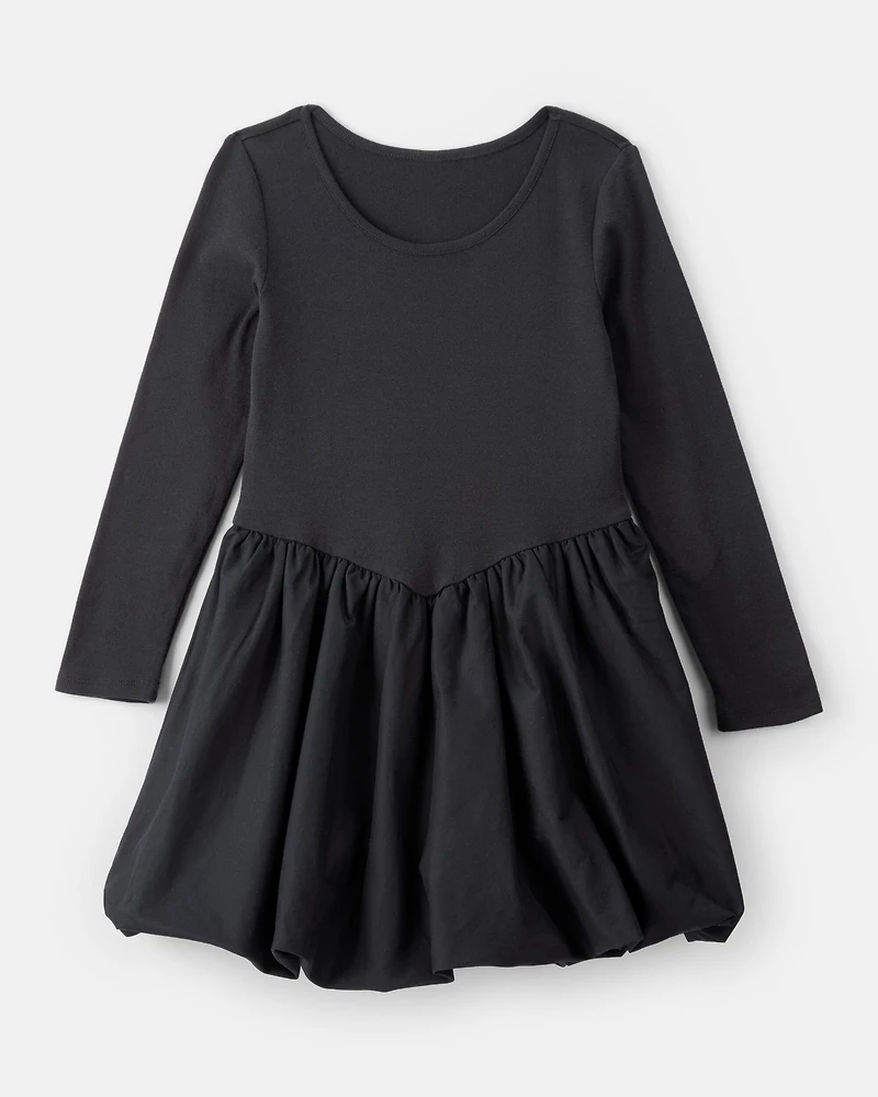 Girls Long Sleeve Cotton Bubble Dress - Black