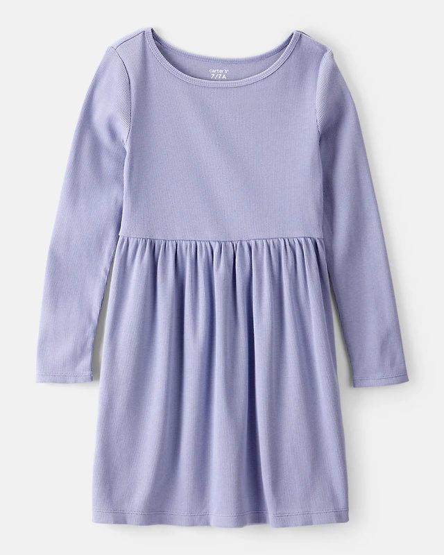Girls Long Sleeve Cotton Bubble Dress - Purple