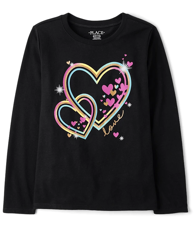 Girls Valentine Heart Long-Sleeve Graphic Tee - White