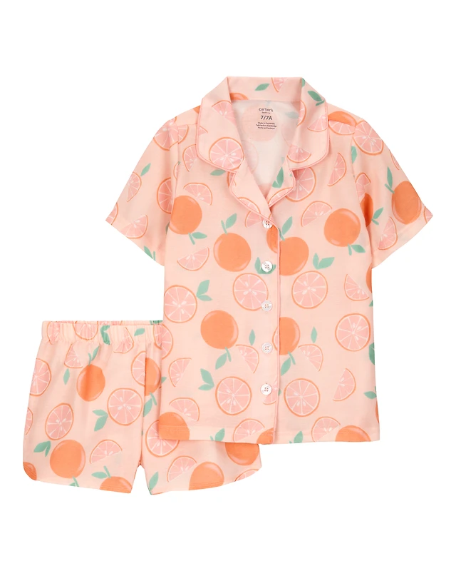 Girls Orange Print Loose Fit 2-Piece Pajamas - Orange