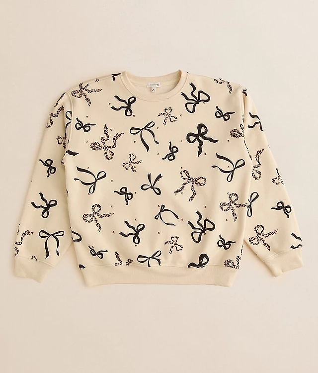 Girls - Rhinestone Cheetah Bow Pullover