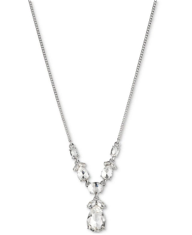 Givenchy Silver-Tone Crystal Lariat Necklace, 16" + 3" extender