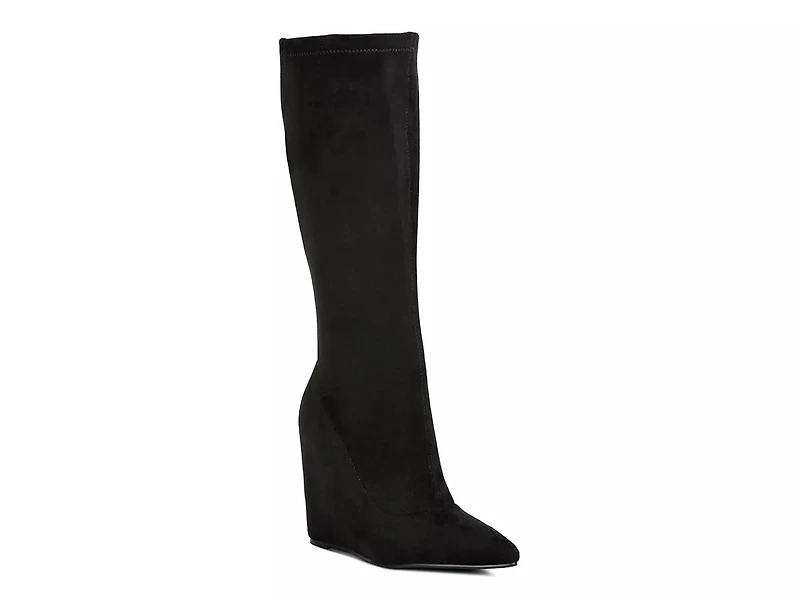 Your glamorous look gets the perfect finishing touch with the Gladol wedge boot from London Rag. This pointy toe boot features a lightly padded footbed to ensure a comfortable stride and a covered wedge heel for a stylish look. The side zipper makes it easier to put on or take off the boot.