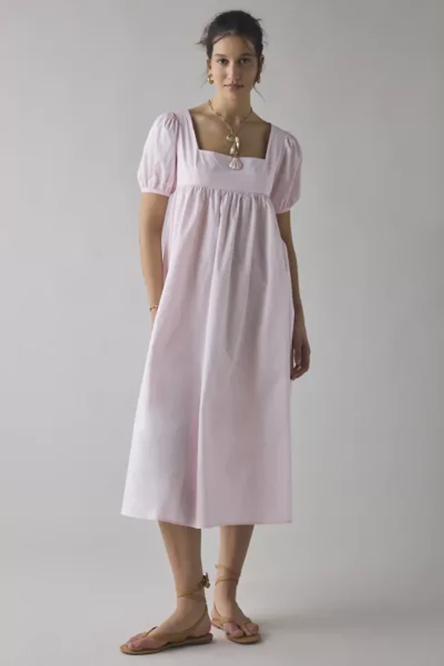 Glamorous Blush Cotton Puff Sleeve Babydoll Midi Dress