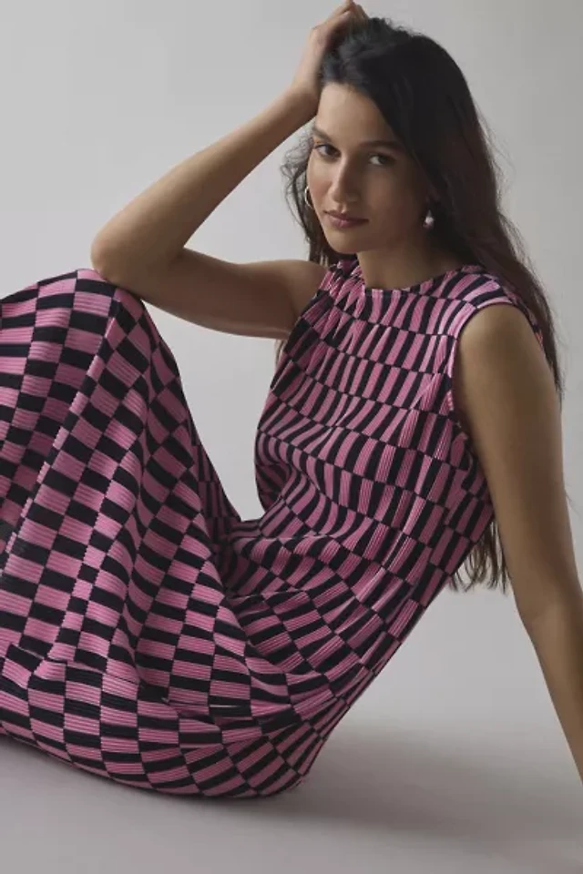 Glamorous Checkerboard Printed Plisse Shift Midi Dress