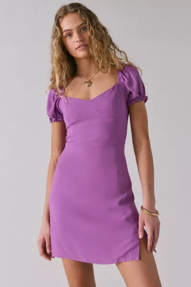 Glamorous Orchid Crepe Puff Sleeve Mini Dress