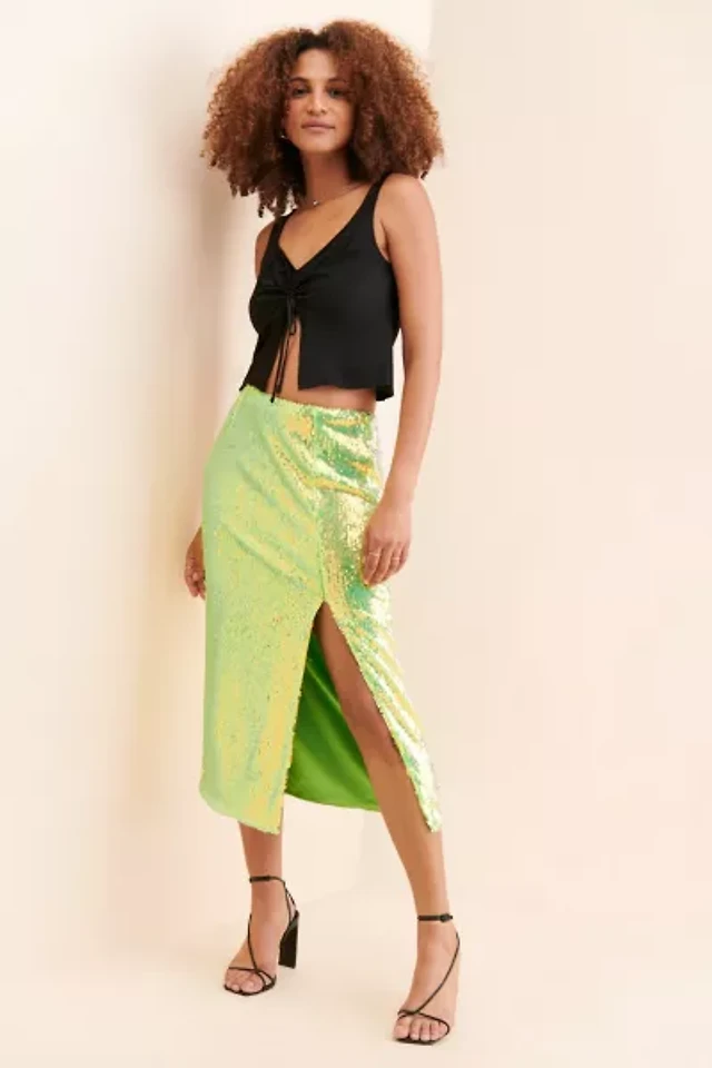 Elle Collection Women's Sequin Midi Skirt Pencil