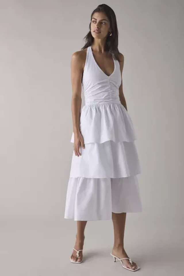 Glamorous Tiered Ruffle Cotton Halter Midi Dress