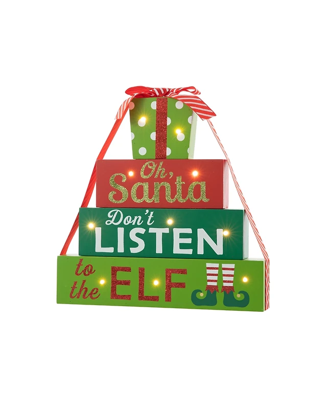 Glitzhome 12" Lighted Wooden Christmas Gift Block Table Decor