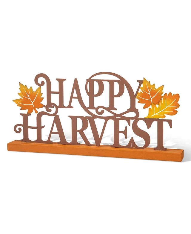 Glitzhome 18" L Wood Metal Happy Harvest Table Decor