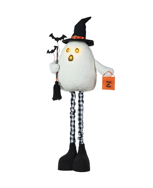 Glitzhome 38"H Lighted Halloween Fabric Ghost Standing Decor, With Telescoping Legs and Timer