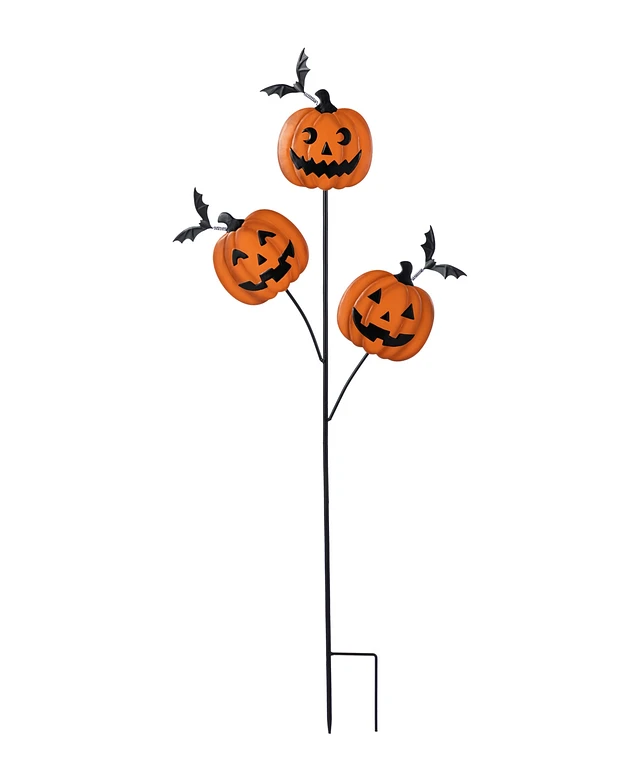 Glitzhome 39.5" Halloween Metal Triple Pumpkin with Spring Bats Yard Stake