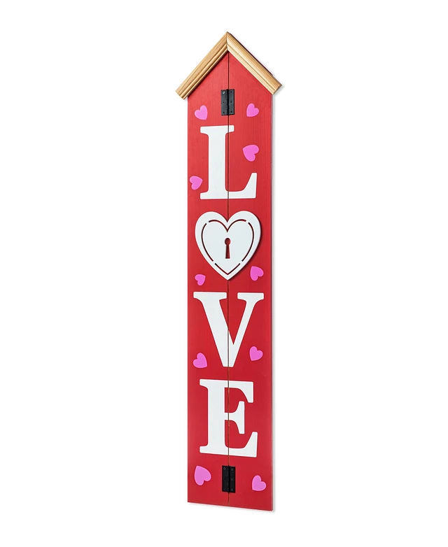 Glitzhome 42" H Valentine's Wooden "Love" House-Shaped Porch Decor