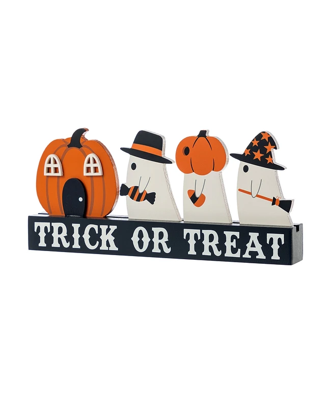 Glitzhome 5.25" Halloween Wooden Trick or Treat Pumpkin Ghosts Table Decor