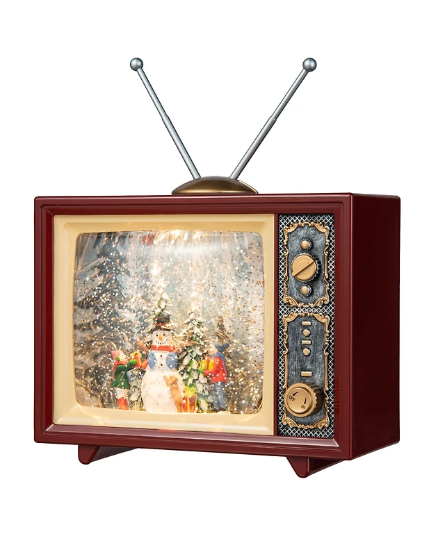Glitzhome 7.5"L Lighted Tv with Snowman Waterglobe