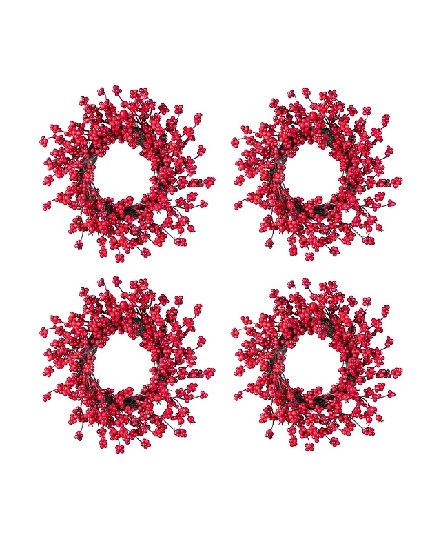 Glitzhome Christmas Mini Red Berries Wreaths, Set of 4