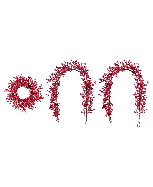 Glitzhome Christmas Red Berries Garland and Matched Wreaths, Set of 3