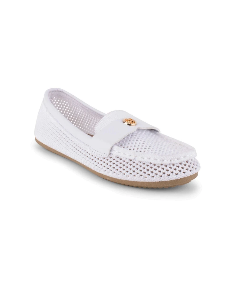 Gloria Vanderbilt Women's Bonnie slip on loafer with breathable knit upper, Pu trim, and logo medallion detail. Comfortable sole for all day wear and support.