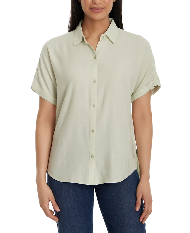 Gloria Vanderbilt Women's Daisy Drop-Hem Button Shirt