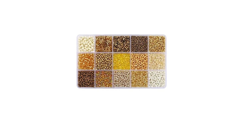 Gnuadz 15 colors Glass Seed Tube Beads Bugle Diy Craft Beading Kit Gold