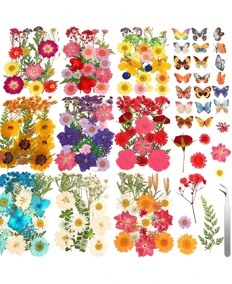 Gnuadz 235 Pcs Pressed Dried Flowers Bulk Dry Molds Candles Diy Art Making Tweezers Butterfly Stickers Set