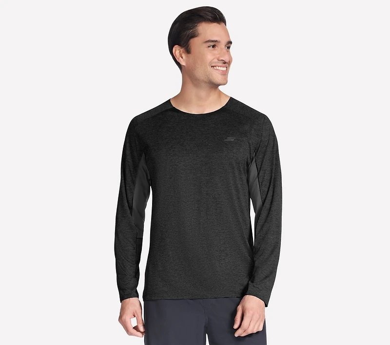 Play in streamlined warmth and comfort wearing Skechers GO DRI™ Circuit Long Sleeve Tee. This performance tee shirt is made from our quick-drying GO DRI™ Charge fabric and features flatlock seams for frictionless wear, color-blocking detail, and a Skechers Performance™ logo at left chest.