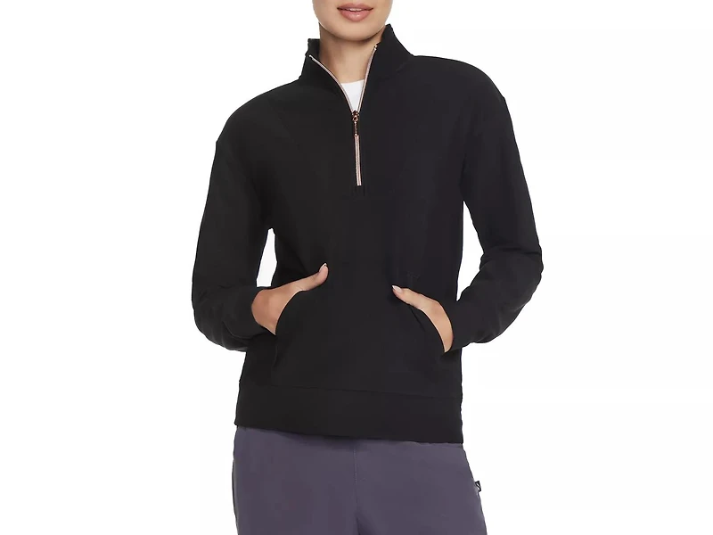 Add a sleek finish to sporty looks with the GO LUXE RIB quarter zip sweatshirt from Skechers. This fleece is made with 83% recycled polyester for sustainable appeal.