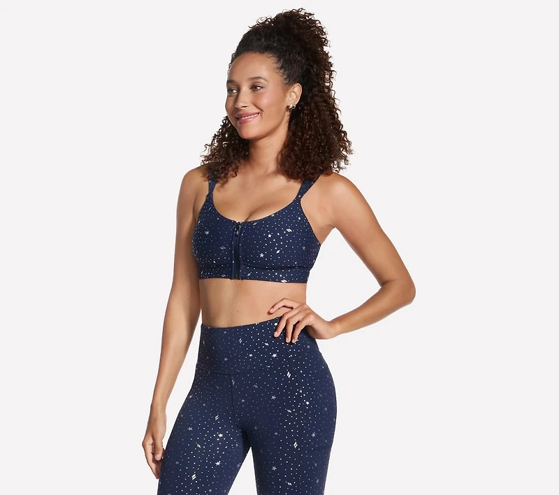 Supportive, stylish, and so comfy - get everything you want in a sports bra with Skechers GO WALK™ Evolution Printed Zip Front Bra. This zip-up style is made from our supportive GO FLEX® fabric in an allover print and features removable Skechers Air-Cooled Memory Foam® bra cups and adjustable straps. Part of a coordinating apparel collection.