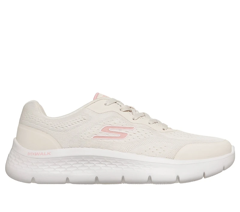 Get your steps in well-cushioned comfort with Skechers GO WALK Flex - Serenity. This sporty walking style features an engineered mesh upper with a lace-up front, an Air-Cooled Goga Mat™ insole, and lightweight ULTRA GO® midsole cushioning with Flex Pillars™ for added support.
