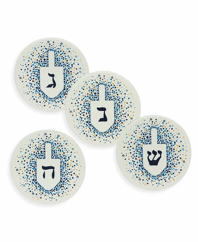 Godinger Chanukah 4 Piece Plates Set with Dreidel Design