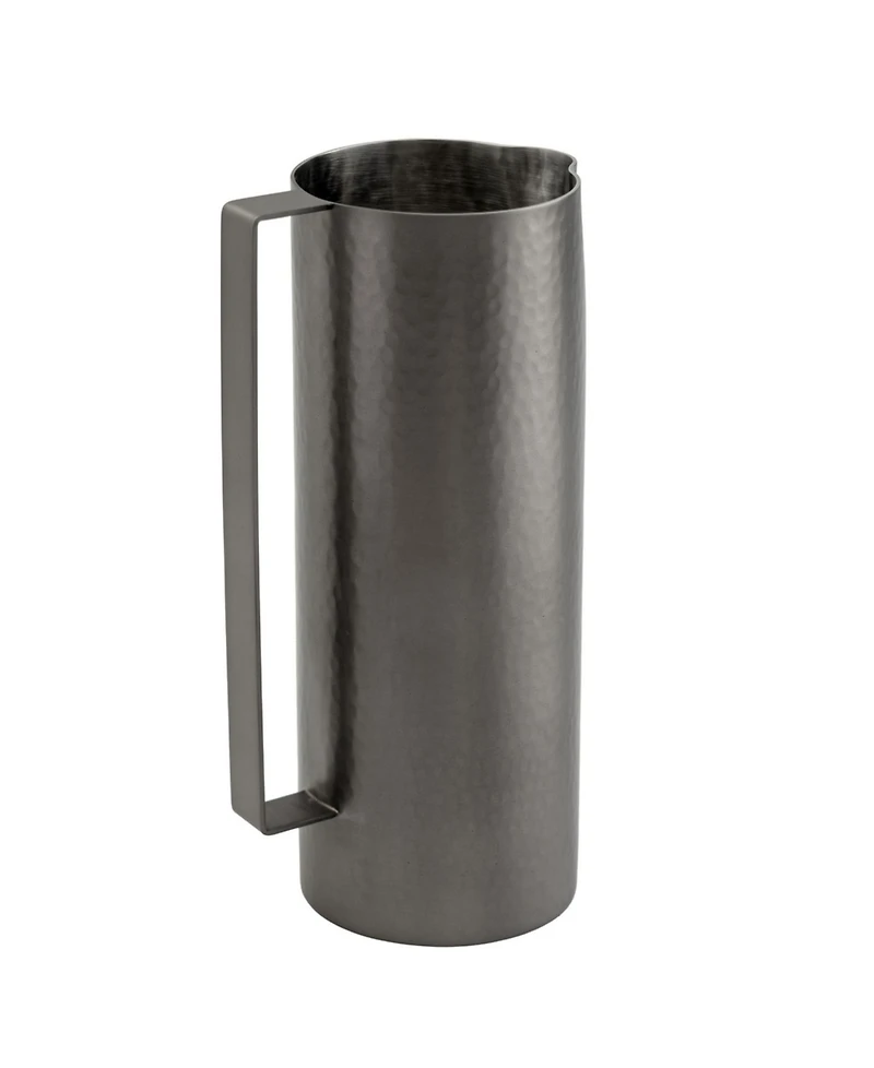Serve in style with the Temari Hammered Gunmetal Beverage Pitcher. This piece is crafted from stainless steel with a hammered gunmetal finish delivering bold depth and texture. Designed with a sleek silhouette, it's perfect for serving water, cocktails, or specialty drinks.