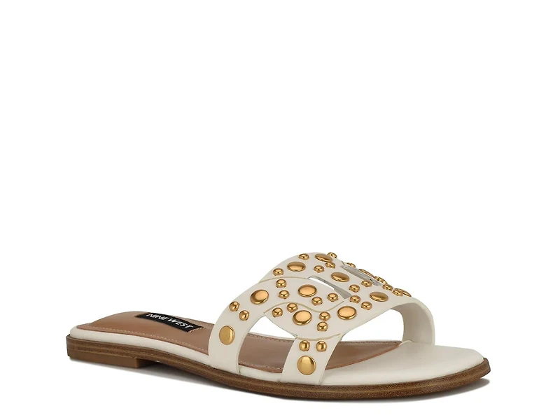 The Gomaz sandal from Nine West brings a fresh, casual vibe to your everyday wardrobe with its modern square toe and studded upper. Designed for easy slip-on wear, this sandal combines a lightly padded footbed and lightweight sole to keep you comfortable as you move through your day.