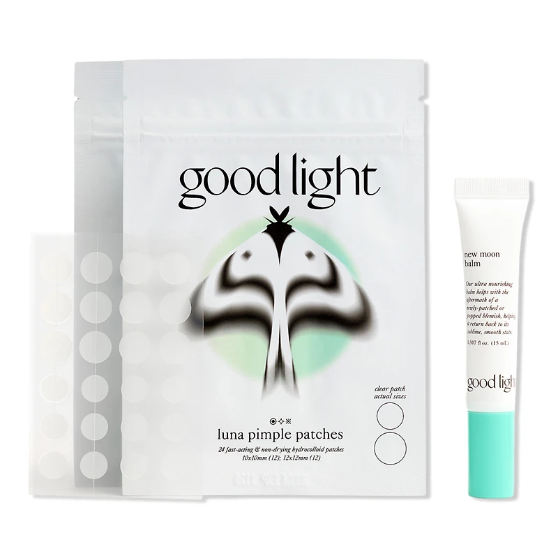 COCOON SET 2CT. Features: New Moon Balm: an ultra-nourishing balm helps with the aftermath of compromised skin - fast - helping it return back to its sublime state.. Luna Pimple Patches: fast-acting and non-drying, these hydrocolloid patches are clinically proven to absorb all pimple fluids and shrink your blemishes in hours, leaving behind clear and smooth skin.. Includes: New Moon Balm (0.5 oz). Luna Pimple Patches (24 ct). :