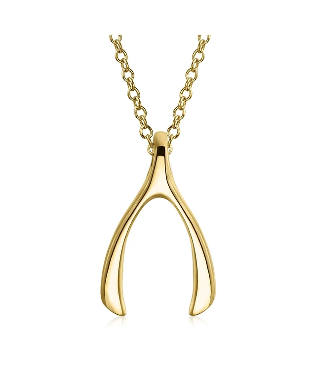 Good Luck Graduation Charm Wishbone Pendant Necklace For Women Girlfriend .925 Sterling Silver Gold Plated