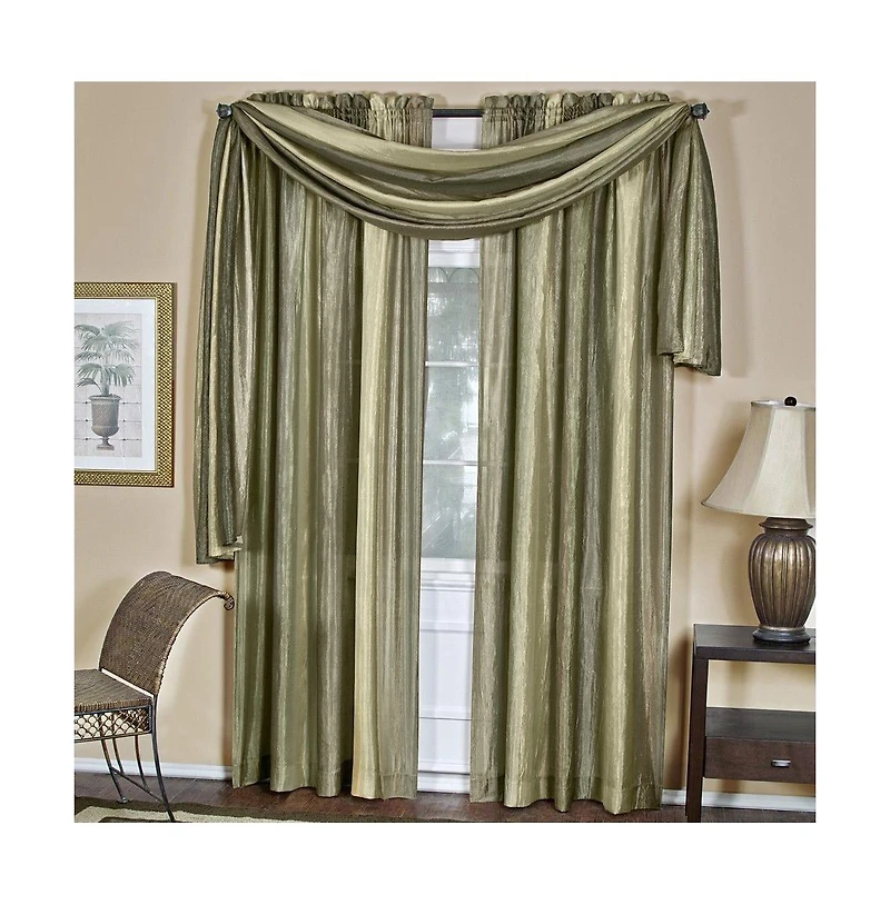 GoodGram Royal Ombre Crushed Semi Sheer Complete 3 Piece Window Curtains and Scarf Set - 42 in. W x 84 in. L, Sage