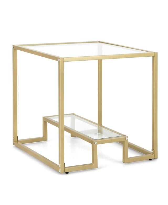 Gouun 22 Inch 2-Tier Square Sofa Side Table with Tempered Glass Tabletop