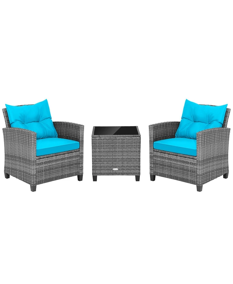 Gouun 3 Pieces Outdoor Wicker Conversation Set with Tempered Glass Tabletop