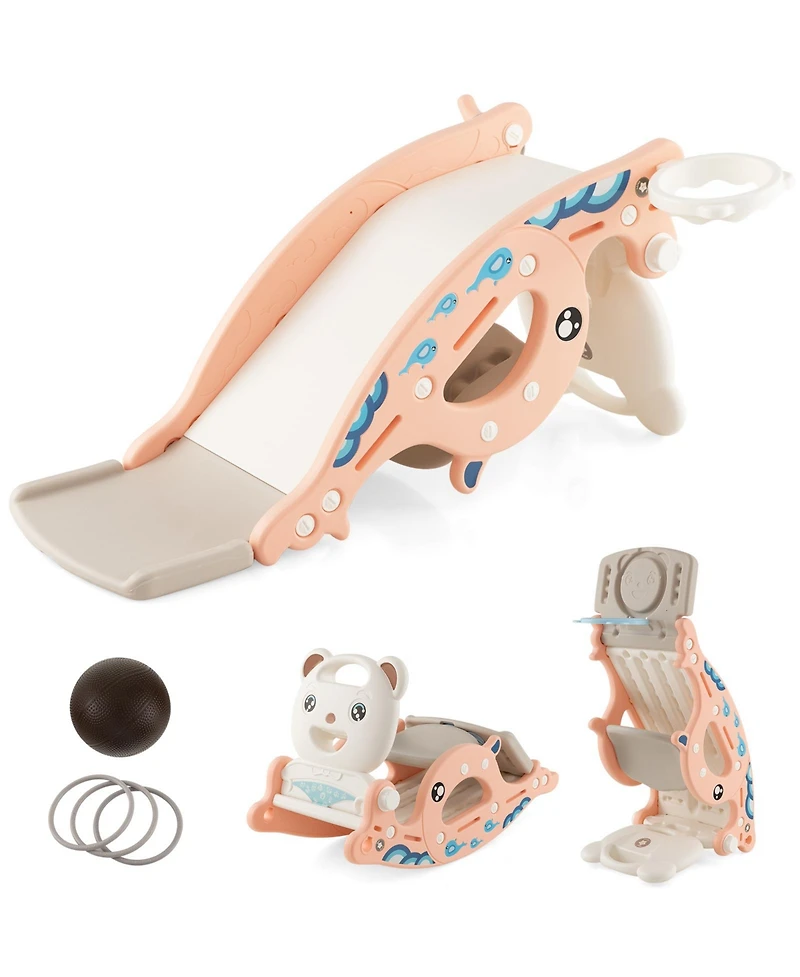 Gouun 4-in-1 Kids Slide Rocking Horse with Basketball and Ring Toss