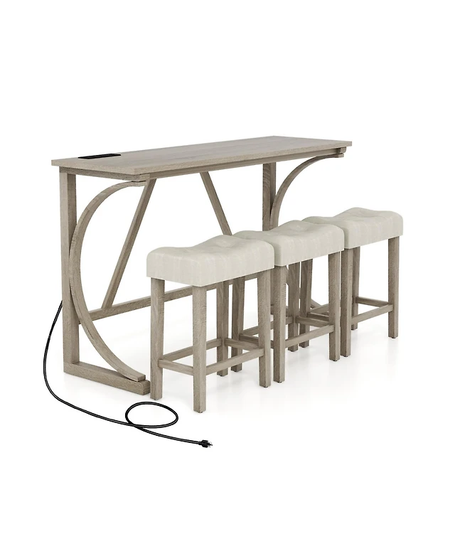 Gouun 4-Piece Bar Table Set with Power Outlet and Upholstered Saddle Seat Stools